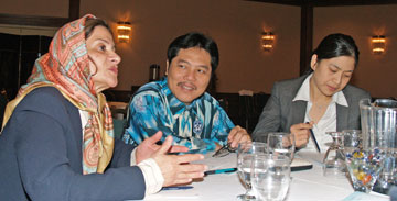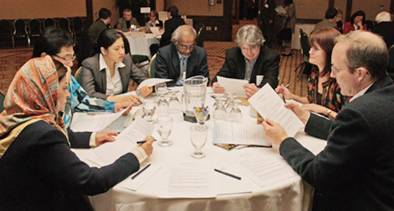 However, the real work of the session was done by the participants. Discussing in small groups, they grappled with such issues as: Is poverty a violation of a basic human right? What should an NGO do if its basic human rights principles conflict with local cultural norms, such as an NGO working with a community that may practice “honor” killings of women accused of marital or sexual improprieties, or female circumcision, or the requiring of the NGO practitioners to wear certain dress or exhibit certain behavior when in public? Is it acceptable for NGOs to use emotional appeals using vivid images of helpless, poor, and starving people in the developing world if such messages portray people as helpless victims, dependent and unable to take action, and convey the sense that development problems can only be solved by a Northern charity? Is it okay to use pictures of torture victims for fundraising even though some feel such pictures may exploit the victims (who probably did not agree to being used in such images)? Does the use of NGOs as subcontractors to provide government aid conflict with the independence and moral compass of the NGO? Can force be used to achieve desired ends, such as to provide food, end torture, or stop genocide? If force is acceptable, when is it acceptable? Is torture justifiable to deal with threats of terrorism or weapons of mass destruction? Do citizens of a country experiencing serious problems of economic insecurity or other deprivations or human rights abuses have the moral right to illegally immigrate into a more developed nation? The insightful conclusions from the small groups were presented to the full audience at the end of the discussion time.