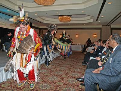 The Awards ceremony was followed by traditional dances performed by dancers from the Native Canadian Centre of Toronto. This performance, representing traditions of Indigenous Nations of Canada, was arranged independently of knowing that Chief Lyons would be an award recipient. During one of the dances, Chief Lyons joined in the dance, deeply moving the performers who felt their performance had been authenticated by his joining in.
